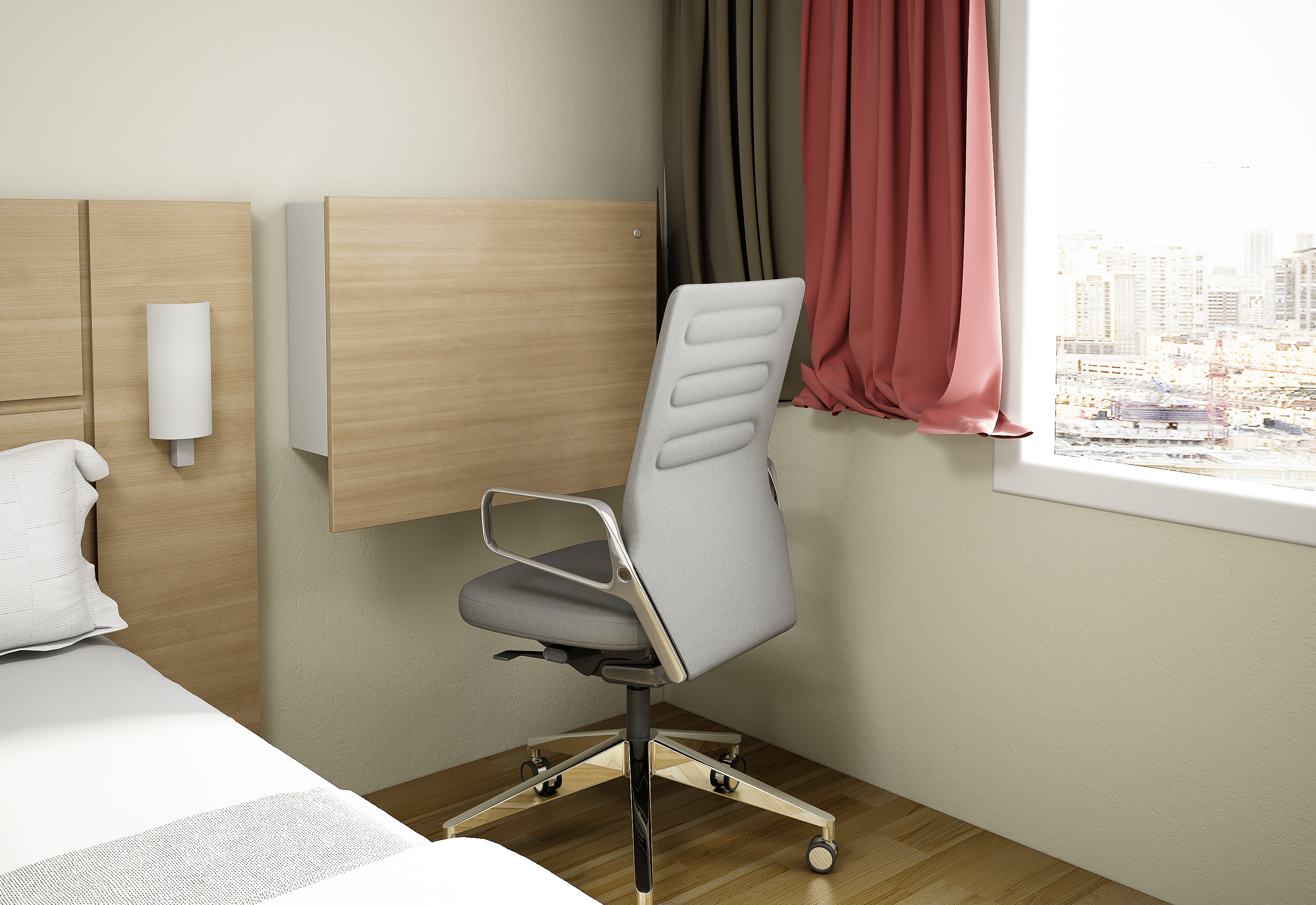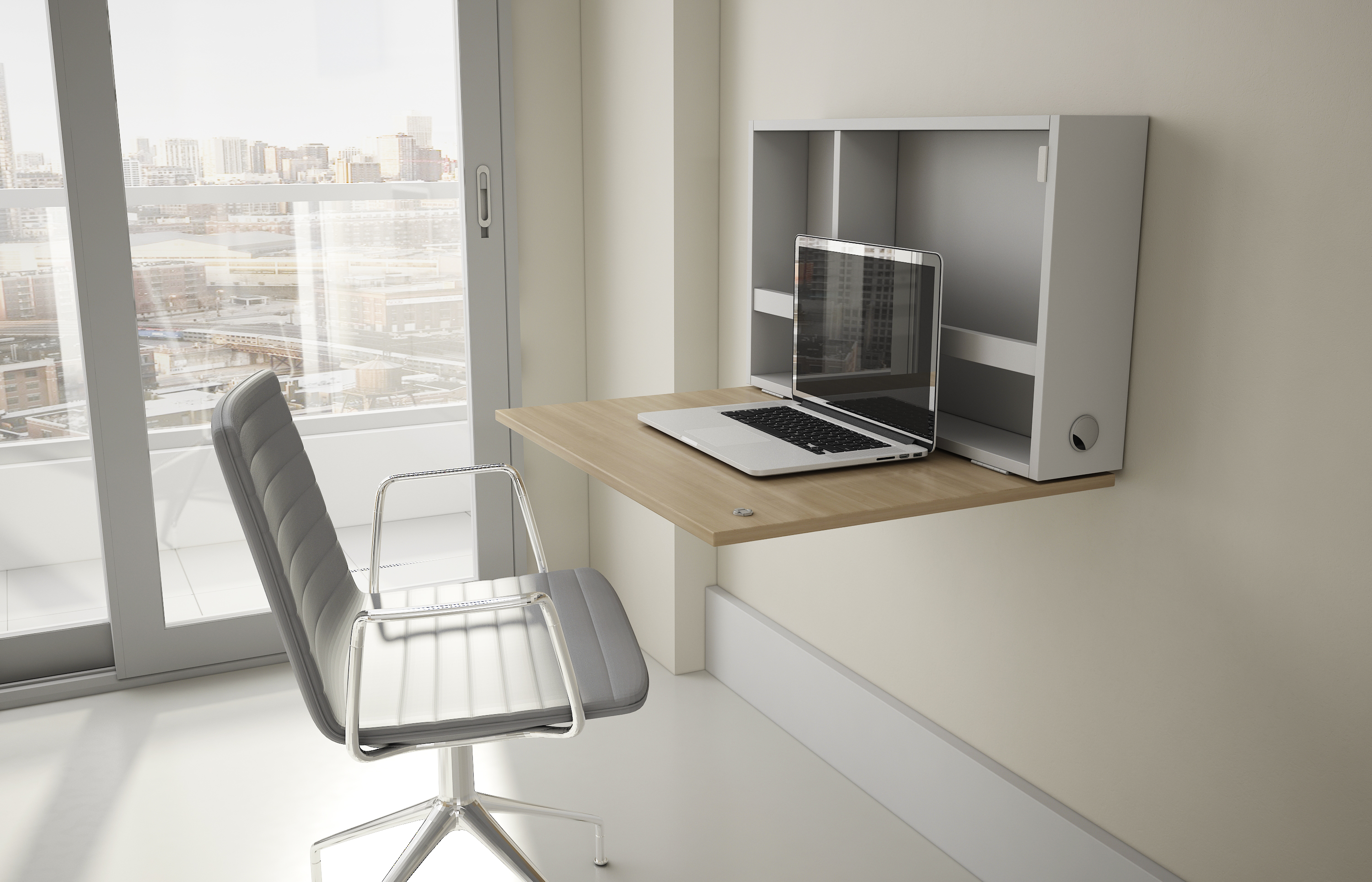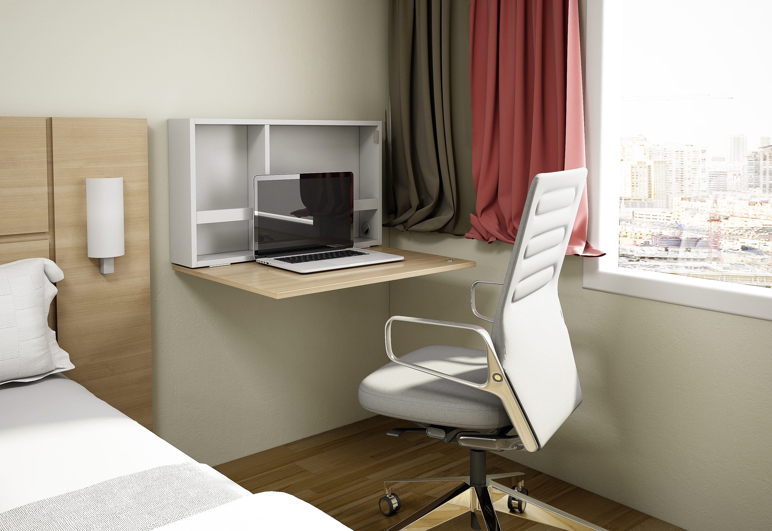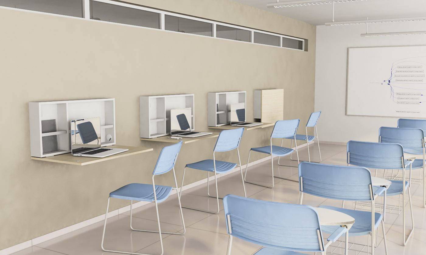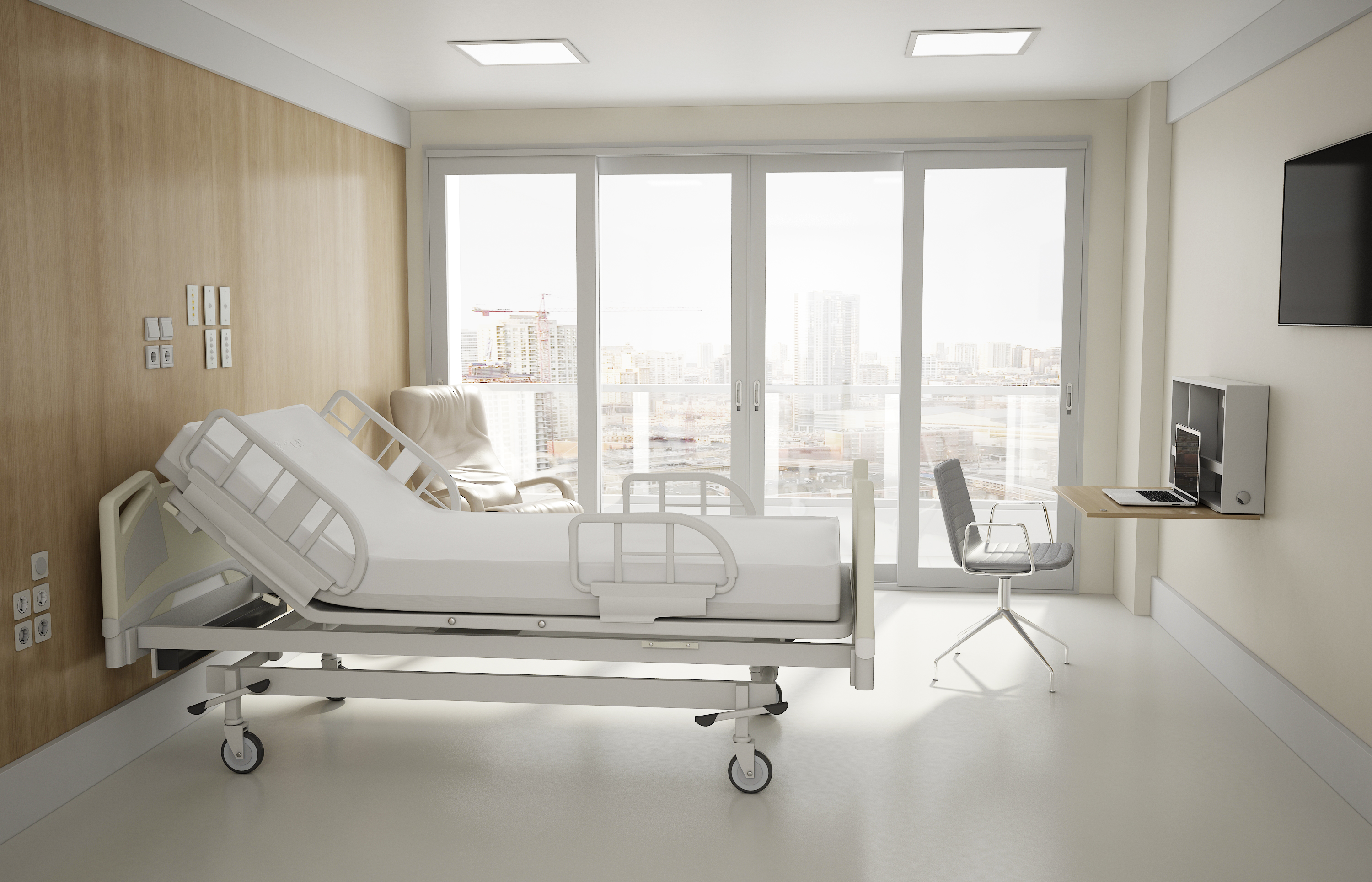 - Hospitais – existem várias áreas em que um mobiliário compacto pode ser utilizado. Uma delas são os quartos, aonde é preciso espaço livre para movimentação do paciente e limpeza, mas também permitir que o acompanhante utilize como apoio para notebook ou anotações.