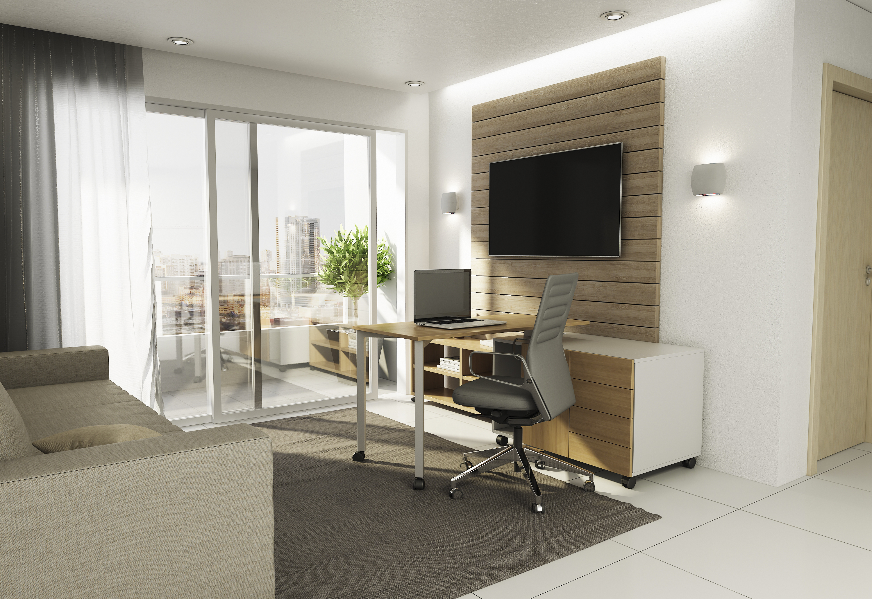 O HO3 é a opção perfeita para melhor harmonização com o ambiente. Possui tampo retrátil que pode ser recolhido após o uso. Os rodízios com freios, facilitam o posicionamento. O armário possui nicho para CPU. Porta e gavetas com chaves para maior segurança.